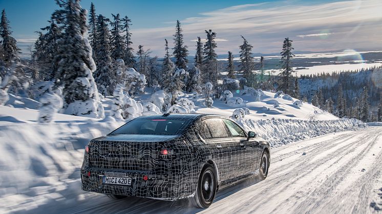 Med BMW i7 venter ren elektrisk kjøreglede i luksuriøs innpakning. Gjennom en rekke omfattende øvelser testes nå prototypene under ekstreme vær- og veiforhold i randsonen av polarsirkelen, på BMW Groups eget testsenter i Arjeplog, Sverige. Der finner testingeniører de frosne overflatene og snødekte veiene som gir ideelle forutsetninger for å presse alle bilens komponenter til det ytterste.