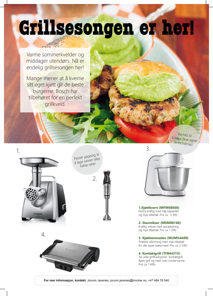 Varme sommerkvelder og middager utendørs. Nå er endelig grillsesongen her! Mange mener at å kverne sitt eget kjøtt gir de beste burgerne. Bosch har tilbehøret for en perfekt grillkveld.