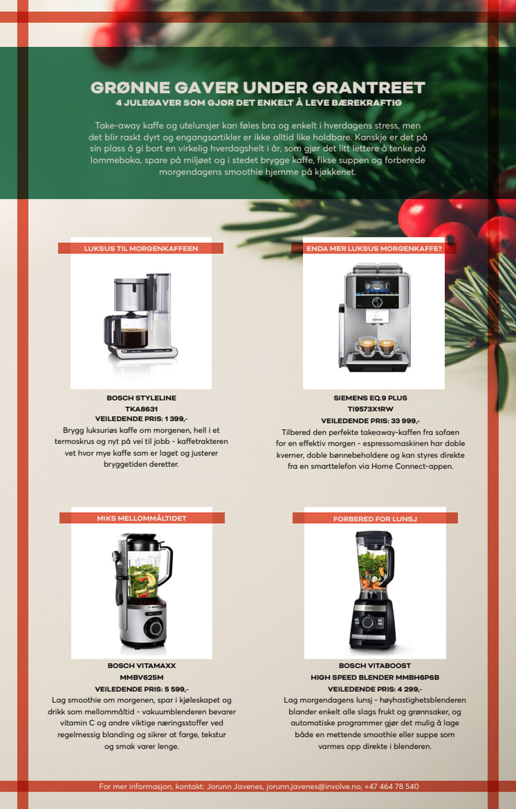 Take-away kaffe og utelunsjer kan føles bra og enkelt i hverdagens stress, men det blir raskt dyrt og engangsartikler er ikke alltid like holdbare. Kanskje er det på sin plass å gi bort en virkelig hverdagshelt i år, som gjør det litt lettere å tenke på lommeboka, spare på miljøet og i stedet brygge kaffe, fikse suppen og forberede morgendagens smoothie hjemme på kjøkkenet.