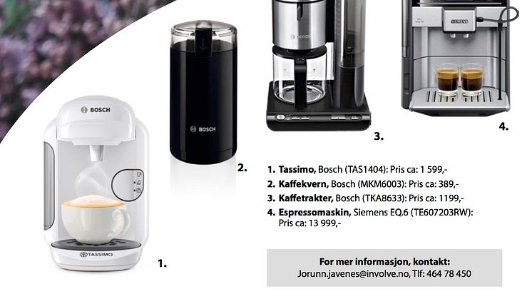 Nordmenn har lenge ligget på verdenstoppen når det gjelder kaffedrikking. Den 1. oktober er det D-dagen for de som tilber kaffebønnen. Bosch og Siemens har det meste som trengs for en god kopp kaffe, enten du foretrekker pulverkaffe, kokekaffe eller espresso brygget på egenmalte bønner.