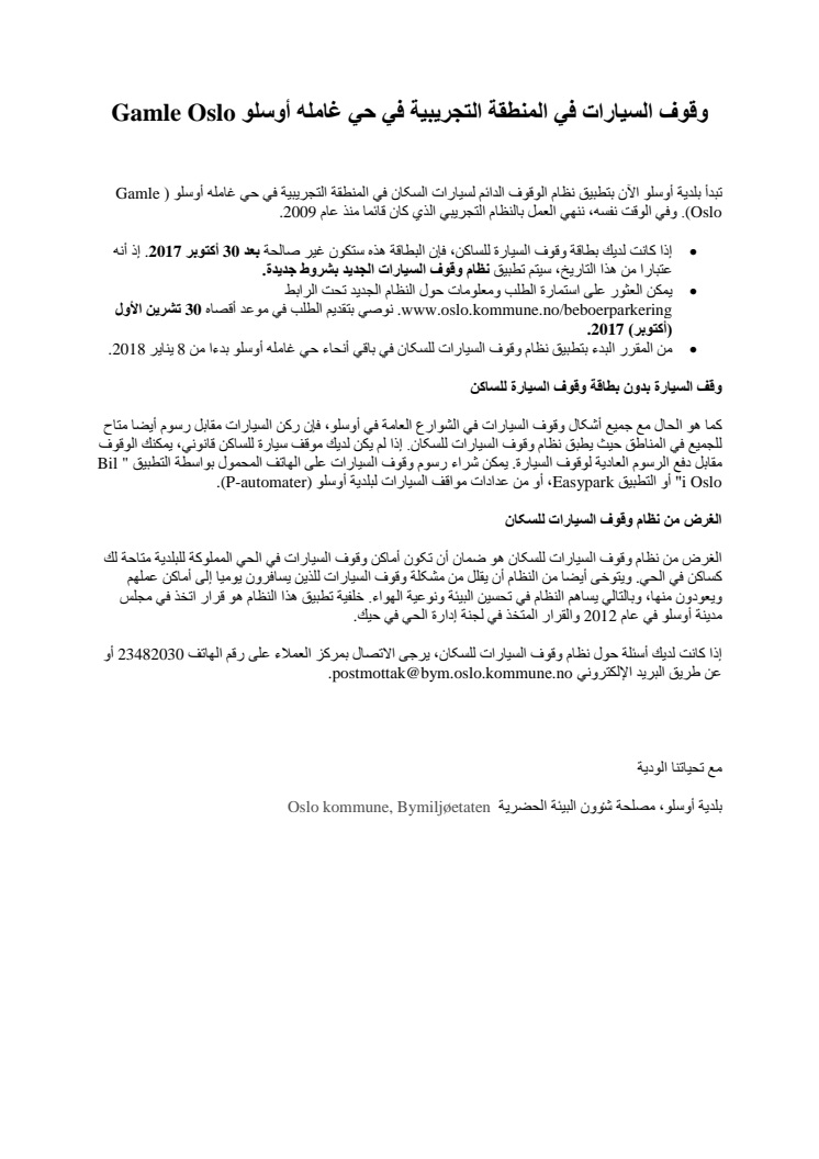 Beboerparkering Gamle Oslo - arabisk