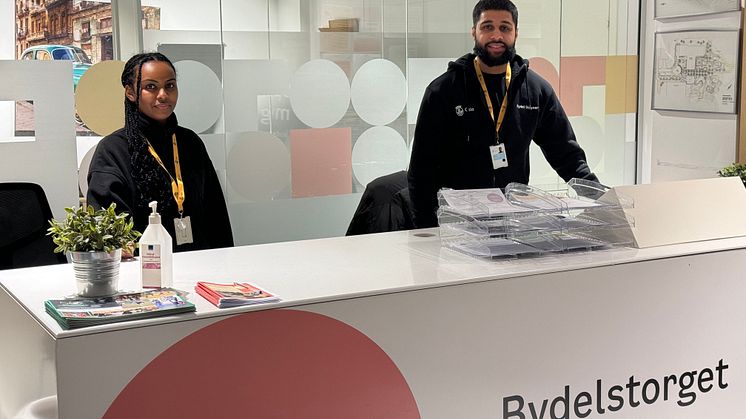 Filmawit og Hassan er enige om at det er veldig fint å jobbe på bydelstorget.