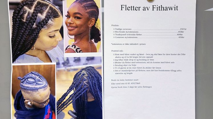 – Hår til flettene kommer nok kundene som også er ungdommer stort sett til å ha med selv. Ved å komme hit til Jobbsenteret for å bli flettet av sine venner og jevnaldrende kan de spare tusenvis av kroner. Derfor er prosjektet et vinn-vinn prosjekt for ungdommene i bydelen, sier Najaat.