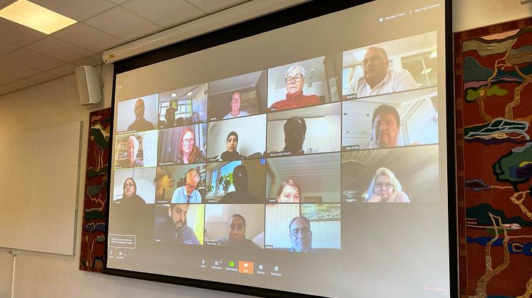 Leder for bydelsutvalget, Rashid Nawaz, og bydelsdirektør Alv H. Sørland er til stede i bydelssalen på Stovner, mens de andre medlemmene i bydelsutvalget deltar på videolink.