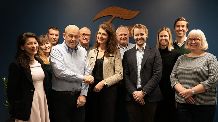 Fagsjef i Norsk Eiendom Naomi Ichihara Røkkum, adm. dir. i Fabritius Asgeir Solheim, og daglig leder i Grønn Byggallianse Katharina Th. Bramslev, sammen med ansatte i Fabritius.