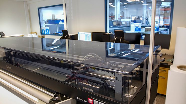 – En viktig årsak var at kombinasjonen av kapasitet og brukervennlighet er svært god, og vi likte også godt at den produserer rull til rull, slik at vi kan trykke nærmest uten tilsyn, også utenom arbeidstid. Det gir kort leveringstid, høy kvalitet og lave produksjonskostnader. I praksis har vi til enhver tid silk papir på den ene rullen og rollup-materiale på den andre, og bytter til andre kvaliteter når produksjonen tilsier det. Det betyr at vi alltid har materiale tilgjengelig, og kan tilby kort oppstartstid og effektiv produksjon. Det største Zund-bordet med Eye-in-the-sky har vi hatt nytte av i tre år allerede, og det passer perfekt sammen med Colorado. Canon som leverandør kjenner vi godt fra tidligere, så vi er trygge på at dette blir en investering som vil hjelpe oss med å nå målet om igjen å passere godt over 30 millioner kroner i omsetning i år, svarer Ronny Neskvern.