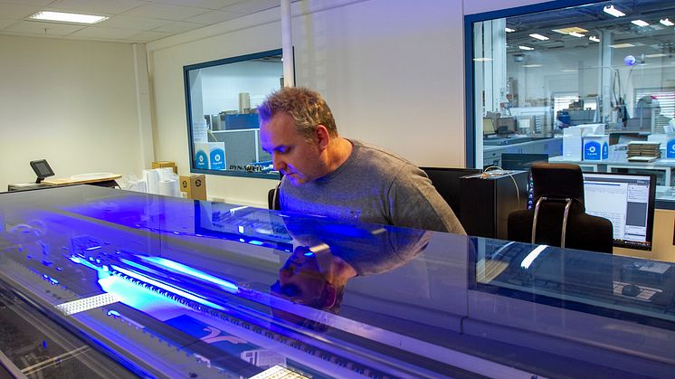 – Vi opplever at det største vekstpotensialet i bransjen er innenfor storformat, både av eksisterende oppdrag vi kan hente hjem til eget hus, og nye oppdrag innenfor interiør, dekor, esker, skilt, plakater, sjokkselgere og mye annet. For oss er det i stor grad en kundestyrt utvikling, der vi ønsker å ha en produksjonspark som sikrer posisjonen vår som totalleverandør av grafiske tjenester, understreker Ronny.