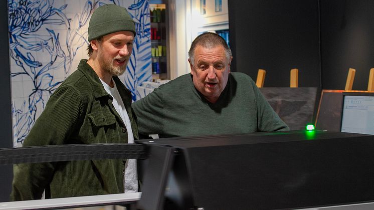– Forberedelsene må være gode, for det tar rundt seks timer å printe alle de 40 lagene i bildet, og det går med flere liter blekk, forteller Henning.