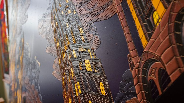 Kunstverkene fra Petter og Christoffer tilbys også som tradisjonelt Fine Art print og som print i fire dybder på transparent akryl, også det printet med Canon Arizona. Petter legger ikke skjul på at det er taktilt print de liker best. – Det gir utrolige fin effekt for de detaljrike tegningene, men samtidig er det mye arbeid med å dele originalen inn i ulike lag, forteller mannen som hoppet av finanskarrieren for å drive med røff og samfunnsengasjert tegnekunst på heltid.