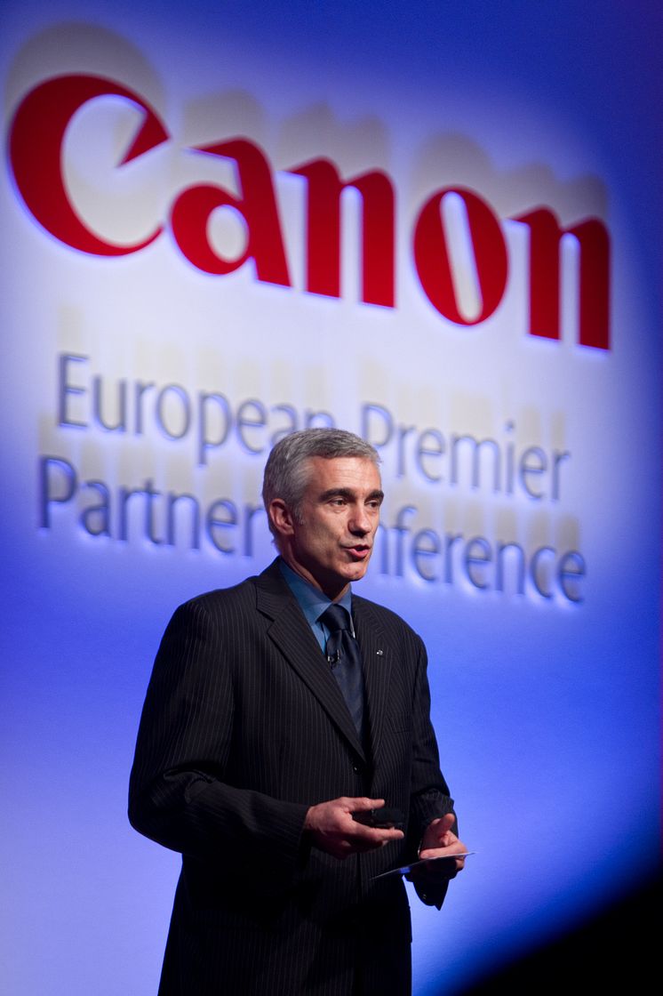 Hubert Bro, Business Strategy Director, Canon Europa som taler på Canon Europas "Premier Partner Conference 2011"