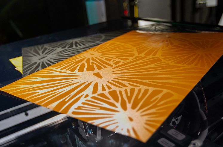 Matt og blankt print på samme flate fra Colorado 1650, i dette tilfellet på tapetmateriale.