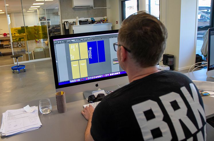 Rett fra design til 30 meter printet vindusfolie for Flekkefjord sparebank.