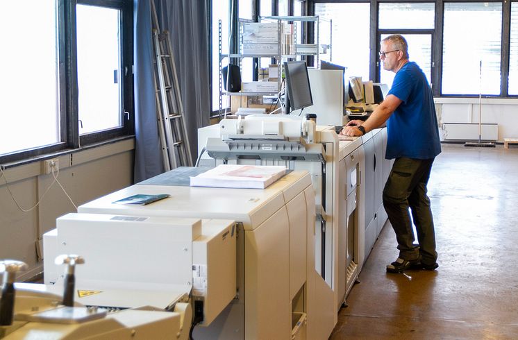 Trykker Åge Eriksen sørger for at det kommer kvalitetstrykksaker ut av den splitter nye imagePRESS C10010 i Molde.