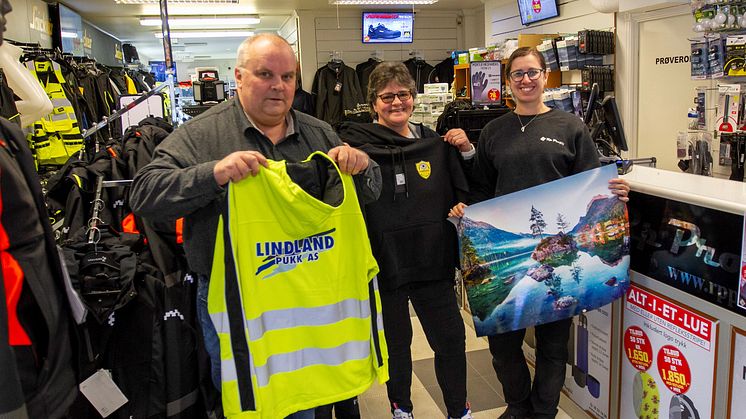 • Bildet er arrangert, men entusiasmen er ekte. I butikken selger Rp Profil alle typer profil- og arbeidsklær, ofte med trykk eller brodering. Fra venstre Rudolf Pettersen, Anne Midbøe Pettersen og Joyce A. M. Donker.