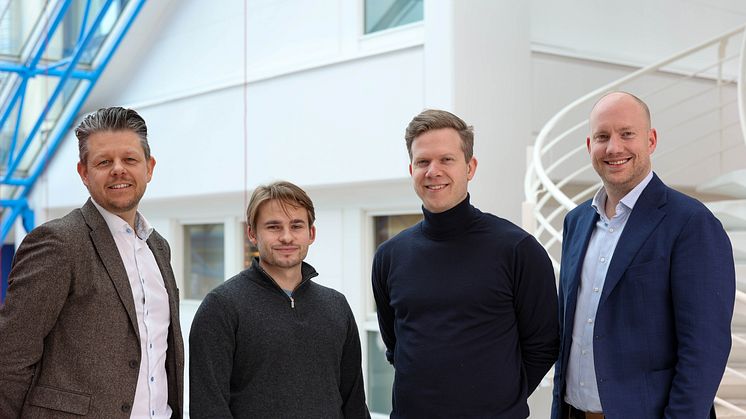 Verdifull dokumentasjon: Canon og Findable har til nå sørget for at nærmere 100 000 dokumenter er digitalisert og satt i system, ved bruk av kunstig intelligens. F.v.: Morten Stang-Medhus (Product Manager i Canon Norge), Stig Bergsjø (forretningsutvikler i Findable), Fredrik Wisløff (daglig leder i Findable), og Simen Teigen (DS Service Manager i Canon Norge).