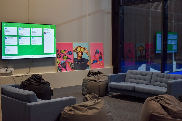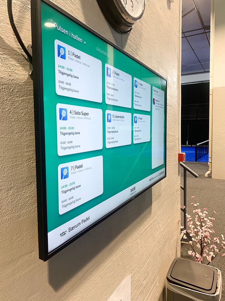 I alt ble 4 skjermer levert til Bærum Padel. Disse ble hengt opp i de to lounge-områdene i hallen og i inngangspartiet. De skal blant annet benyttes for å vise hvilke baner som er booket og geleide spillerne til riktig bane, samt vise livesendinger, TV sport og intervjuer.