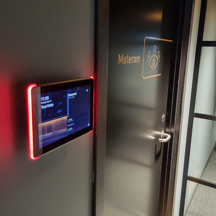 Utenfor møterommene henger et 8" Yealink Room Panel for Microsoft Teams som kjører på Android 9.0, og leveres med full RGB-programmerbar LED-bakgrunnsbelysning for umiddelbar synlig kommunikasjon av romstatus. Den inkluderer 10-punkts berøringsfunksjoner, 2x2 MIMO 802.11ac Wi-Fi, Bluetooth 5.0, innebygd NFC/RFID-leser, forbedret mikrofonarrayer og høyttalere for å møte alle moderne krav til møterom.