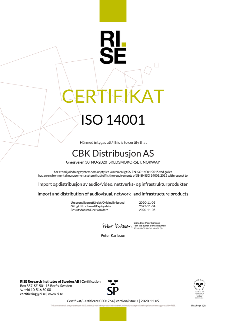 CBK er ISO sertifisert etter standarden 14001 (miljø)