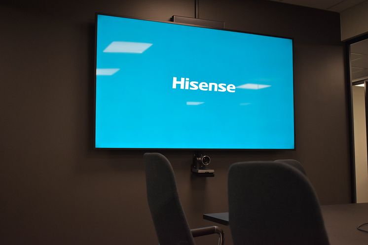 Hisense møteromsskjerm og Yealink kamera i Uponor sine nye kontorlokaler.