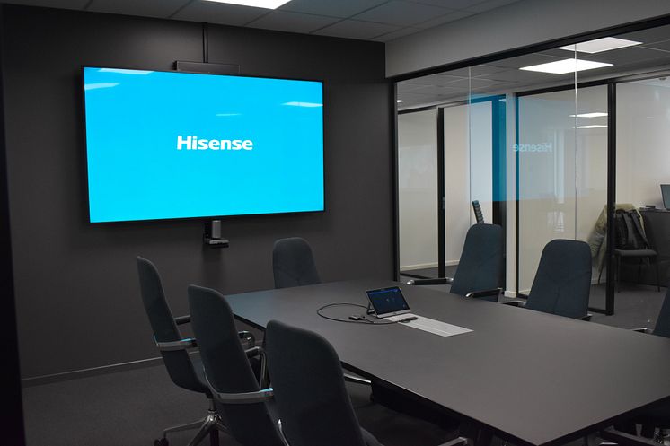 Hisense møteromsskjerm og Yealink Microsoft Teams romsystem i Uponor sine nye kontorlokaler.
