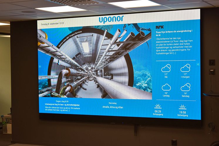 Uponor er veldig fornøyd med leveransen og installasjonen av de nye "digitale" fasilitetene på kontoret.