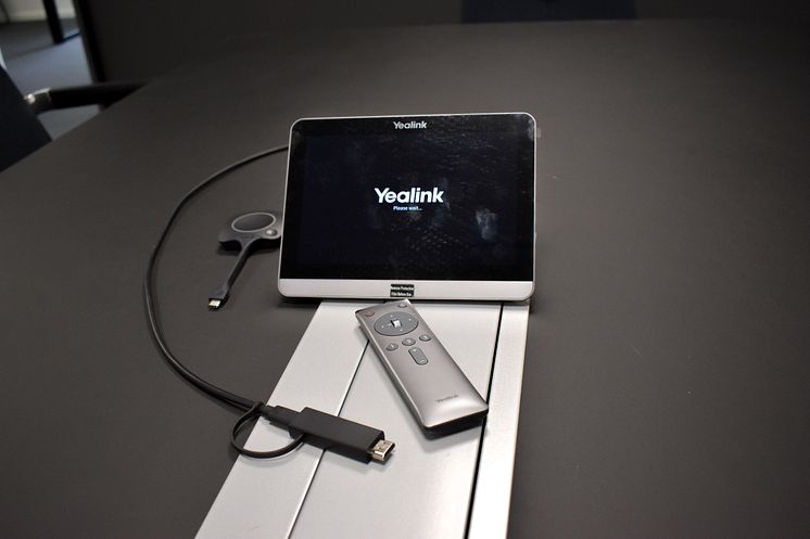 I alt er det tre store møterom i kontorlokalene. Der henger det Hisense 86" 16/7 skjermer sammen med Yealink Microsoft Teams romsystem. Romsystemet består av et PTZ kamera med 12 x optisk zoom, lydplanke, touchpanel og takmikrofoner fra Yealink.