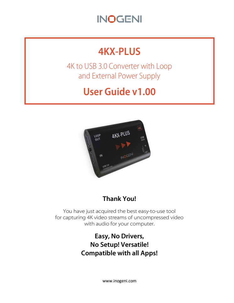 INOGENI 4KX-PLUS: Utprøvd teknologi for å konvertere HDMI til USB 3.0
