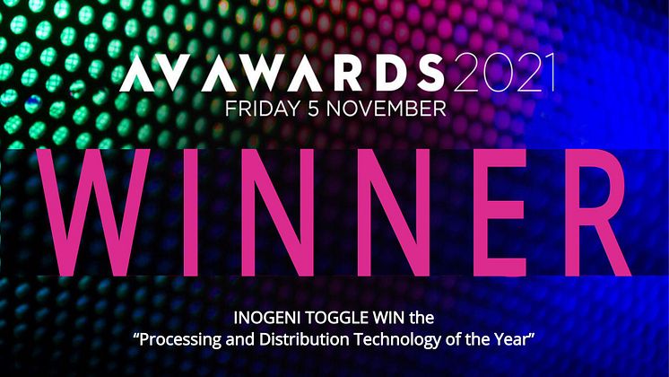Vi kan med glede kunngjøre at INOGENI sin TOGGLE USB 3.0 Switch er vinneren av kategorien "Processing and Distribution Technology of the Year" under AV Awards 2021, som ble arrangert 5. november i London, England.