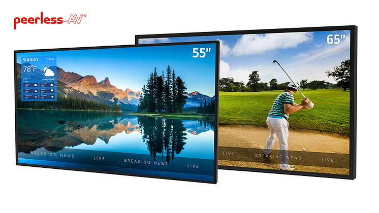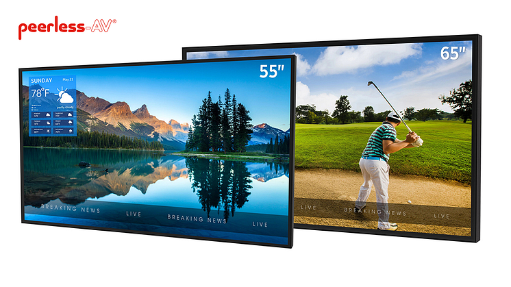 Peerless-AV sin markedsledende 55" Xtreme™ High Bright utendørsskjerm nå forbedret for topp ytelse i alle utendørsmiljøer