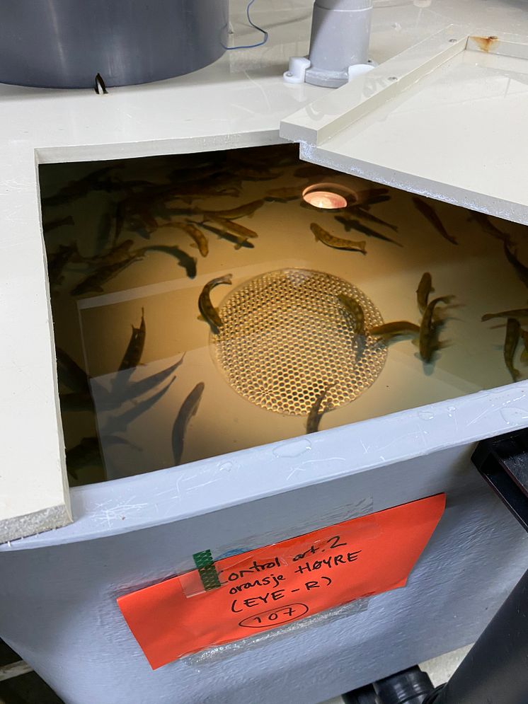 Ferdig vaksinert fisk i forsøkskar.jpg