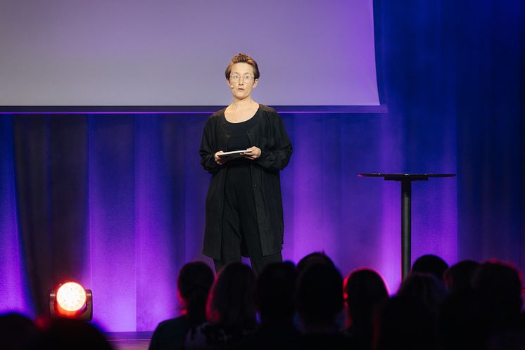 Prisutdeler Idun Bjerkvik Leinaas på scenen
