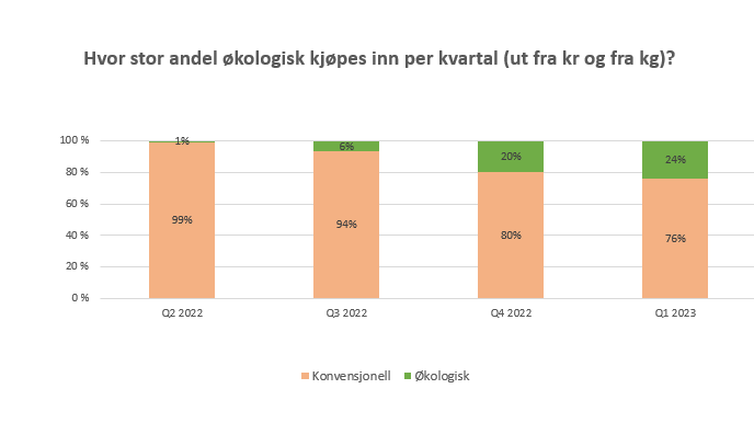 Målsettingen om økologisk andel er noe Vestland har til felles med flere andre fylkeskommuner rundt om i landet. Offentlige innkjøp av økologisk mat er anerkjent av Riksrevisjonen både i 2016 og i 2022 som viktige tiltak for å stimulere det norske markedet for økologiske landbruksprodukter og er nevnt som en av tiltakene offentlige innkjøpere kan bruke for å vri anskaffelsene i mer bærekraftig retning. Ø-merket er det offentlige miljømerket på matprodukter, og Vestland har i dag et vedtak på 15 % økologisk.