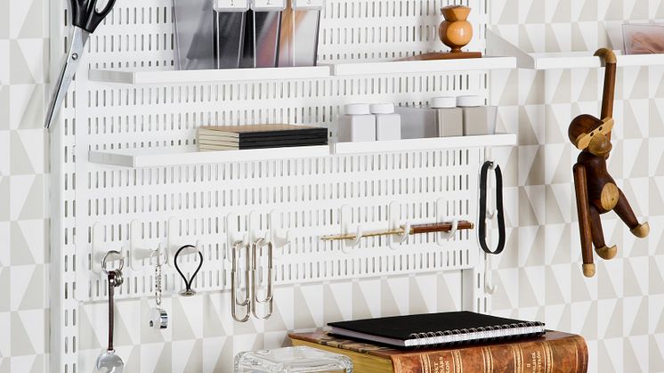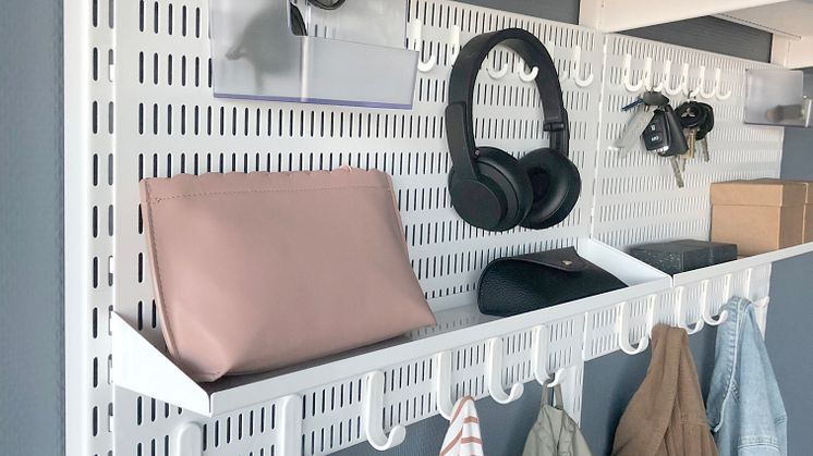 Ah! Hvor herlig er det ikke når alle småtingene har sin egen plass slik at du ikke trenger å lete etter klokke, saks, nøkler eller alle de andre små tingene som har en tendens til å forsvinne på mystisk vis? Til våre oppbevaringstavler og -lister har vi mange forskjellige kroker som enkelt knipses på og kan flyttes rundt til du har perfeksjonert et system som passer hjemme hos deg.