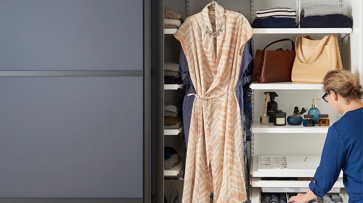 Etter denne sorteringen sitter du med igjen klær som er din størrelse, som du bruker jevnlig, er komfortable og som passer stilen din. Før klærne skal inn i skapet, kan det lønne seg å ta en titt på oppbevaringsløsningene som finnes i skapet ditt. Fyll på med kleshengere, kurver og kroker dersom du trenger det.