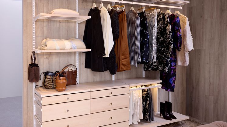 - Kombiner skuffer, hyller og garderobetang for oppheng av plagg for å ta vare på plaggene dine på best mulig måte.