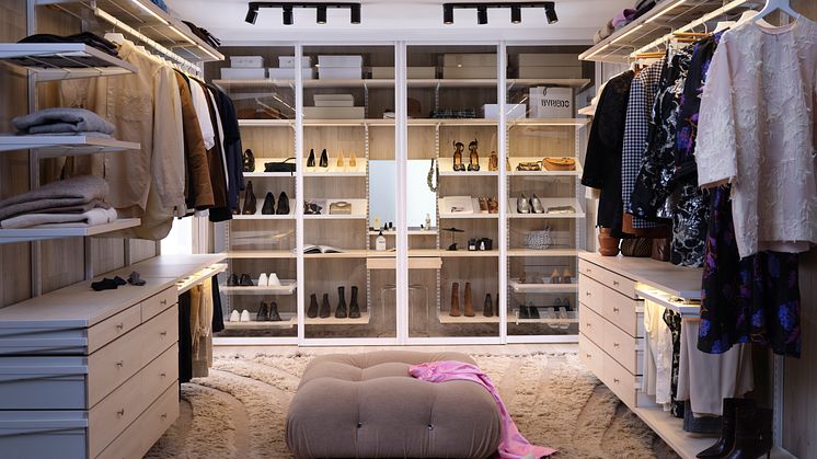 Skap en drømmeaktig walk-in-garderobe uansett størrelsen på plassen du har til rådighet. Med smart garderobeplanlegging og fleksibel innredning kan lyset strømme gjennom rommet, noe som er perfekt for åpne garderobeløsninger. Skap drømmegarderoben som har plass til alle klærne, veskene, skoene og accessoirene.
