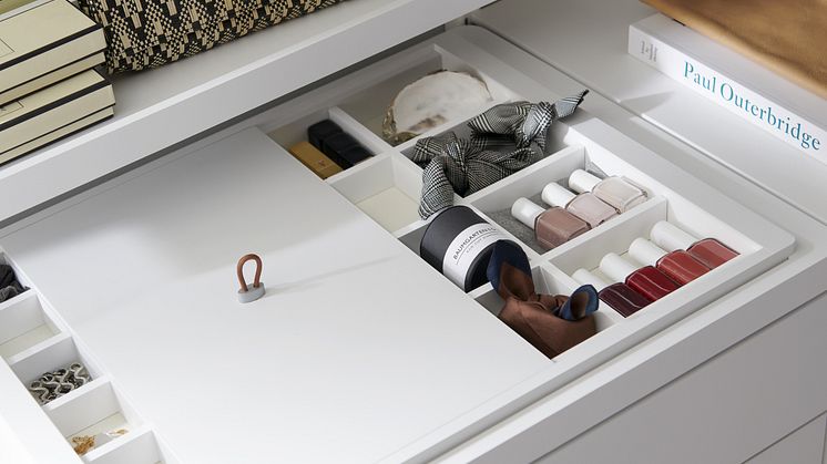 Skuffer med trefronter gir et slett og helhetlig uttrykk, mens innsiden er luftig, romslig og praktisk.