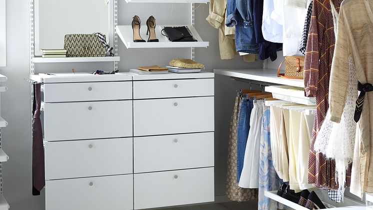 Med massive trefronter, hyller og andre detaljer, skaper du rene linjer i garderoben, men beholder den fleksible og luftige følelsen.