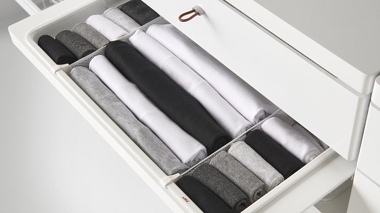 Med avdelere i meshkurvene kan du dele dem opp i ulike seksjoner for å skape orden og system i klærne dine.