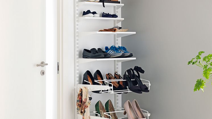 Vårt beste tips er å bruke veggene! Bygg løsninger i høyden, så utnyttes plassen maks og du har full oversikt over skoene dine. Er det barn i husstanden, oppbevares skoene i deres høyde. Da kan de finne frem og rydde på plass sine egne sko.