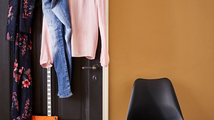 Tips: "Kroker på baksiden av soveromsdøren er en perfekt "mellomstasjon" for plagg som verken er rene eller skitne. De finnes i en menge ulike former og farger og er superlette å henge eller feste på døren. Det finnes også kroker og smart tilbehør til garderobe- og hyllesystemer som passer til formålet. Uansett hvilken variant man velger, så er hovedregelen ikke å overbelaste mellomstasjonene – fem kroker betyr maksimalt fem plagg."