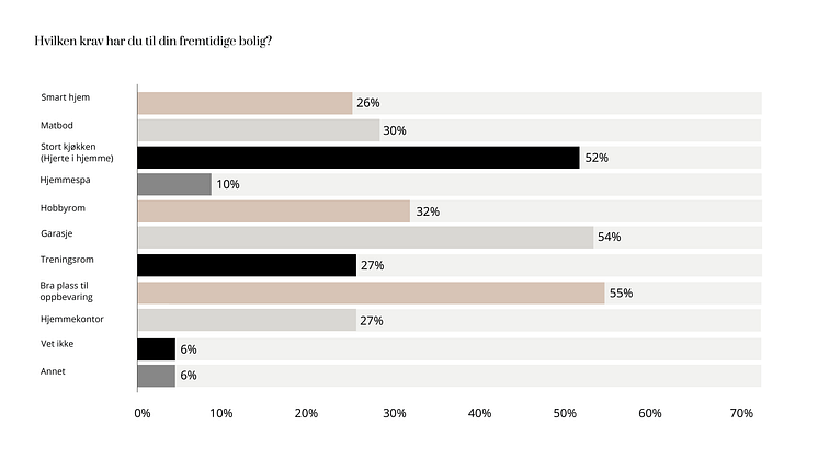 2 av 5 nordmenn (55 %) etterspørr større oppbevaringsplass ved flytting og bytte til en ny bolig.