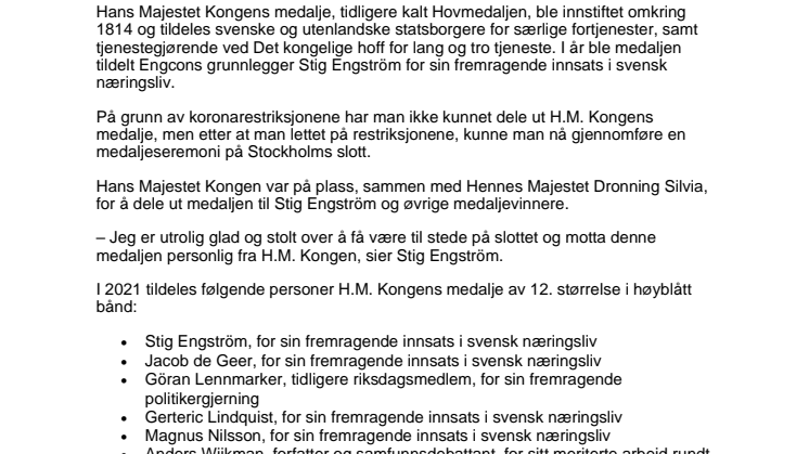• 271021_Press_Engcons grunnlegger Stig Engström fikk medalje av H.M. Kongen på Stockholms slott