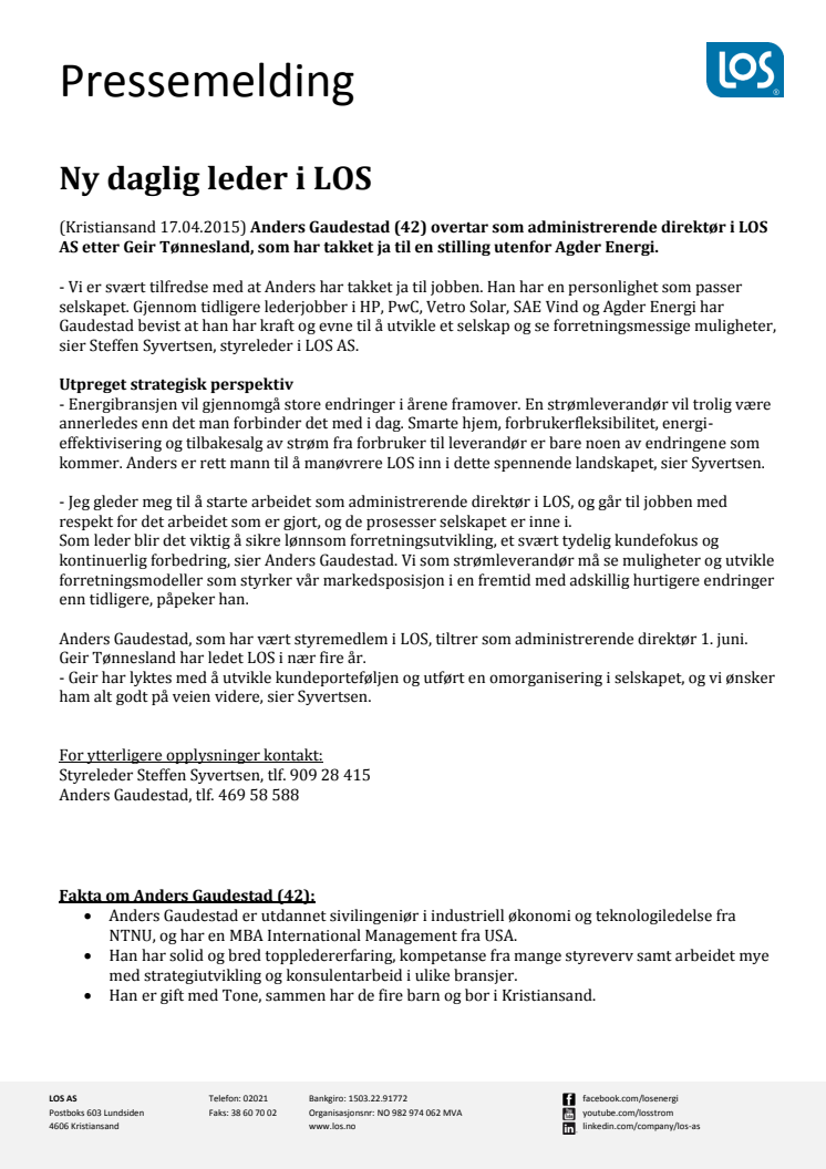 Anders Gaudestad (42) overtar som administrerende direktør i LOS AS.