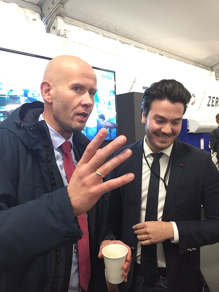 Olje- og energiminister Tord Lien sammen med Mattias Harrysson, Salgssjef Energitjenester i LOS Energy.