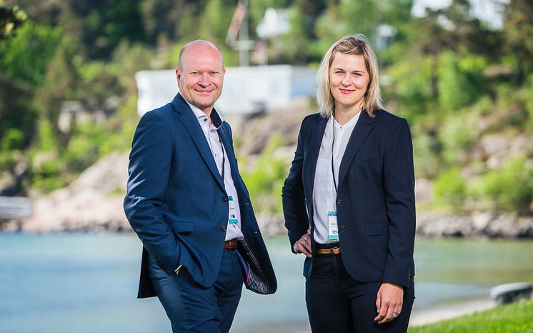 LOS Energy har kåret Eramet Norway Kvinesdal til Sørlandets smarteste strømbruker i kategori bedrift. Fra høyre på bildet Stine Skagestad fra Eramet Norway Kvinesdal og prisutdeler Harald Steinsholt fra LOS Energy.