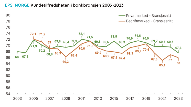 I to tiår har EPSI gjennomført årlige kundeundersøkelser i den norske banksektoren. Studien, som baserer seg på intervjuer fra mer enn 6 000 bedrifter og enkeltpersoner landet rundt, gir dyp innsikt i den norske banksektor - fra kundenes perspektiv. Årets studie avdekker en merkbar nedgang i kundetilfredsheten og lojaliteten både i personmarkedet og bedriftsmarkedet.