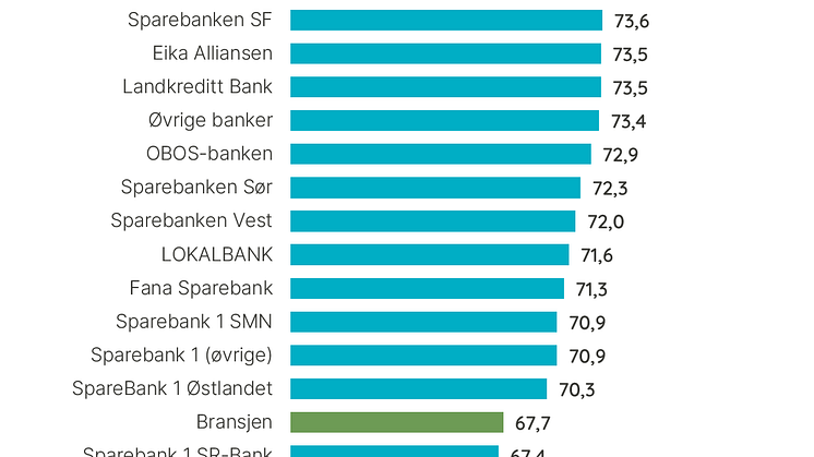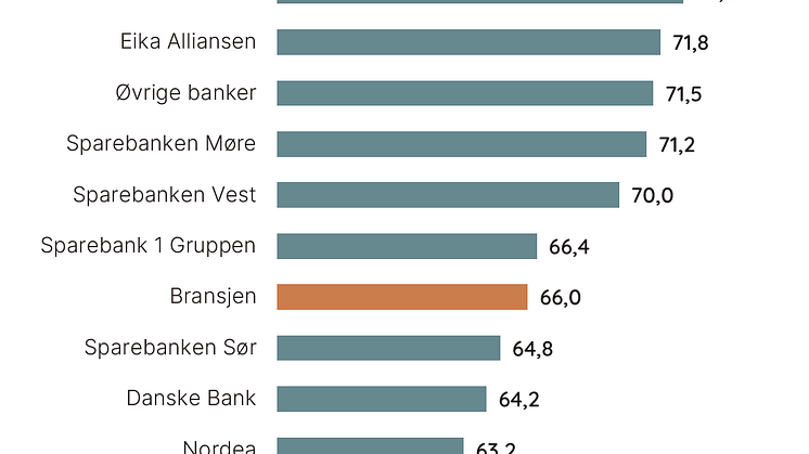 På motsatt side av spekteret finner vi DNB. Skåren på 62,3 er den svakeste DNB har hatt i denne målingens historie.