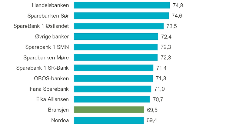 Årets EPSI måling i privatsegmentet tar for seg 18 ulike banker,- alt fra de store nasjonale til de mindre regionale bankene. Blant disse 18 bankene er det Sbanken som også i år kan skilte med de mest fornøyde bankkundene. Til tross for en liten tilbakegang i kundetilfredsheten, er det ingen tvil om at Sbanken fortsatt leverer en svært god og enkel bankopplevelse.
