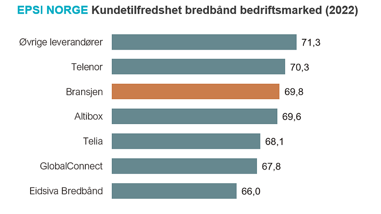 Også i bedriftssegmentet er det gruppen med de øvrige bredbåndselskapene som får den beste tilbakemeldingen. Denne samlegruppen består av resultatene til aktører som Tafjord Bredbånd, Nextgentel, NTE, Xfiber og Enivest.